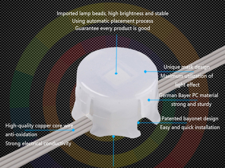 | Mettre en évidence | Lumière extérieure de pixel de RVB LED,Lumière de pixel de SMD5050 20mm LED,Lumière de pixel de DC05V IP67 LED |